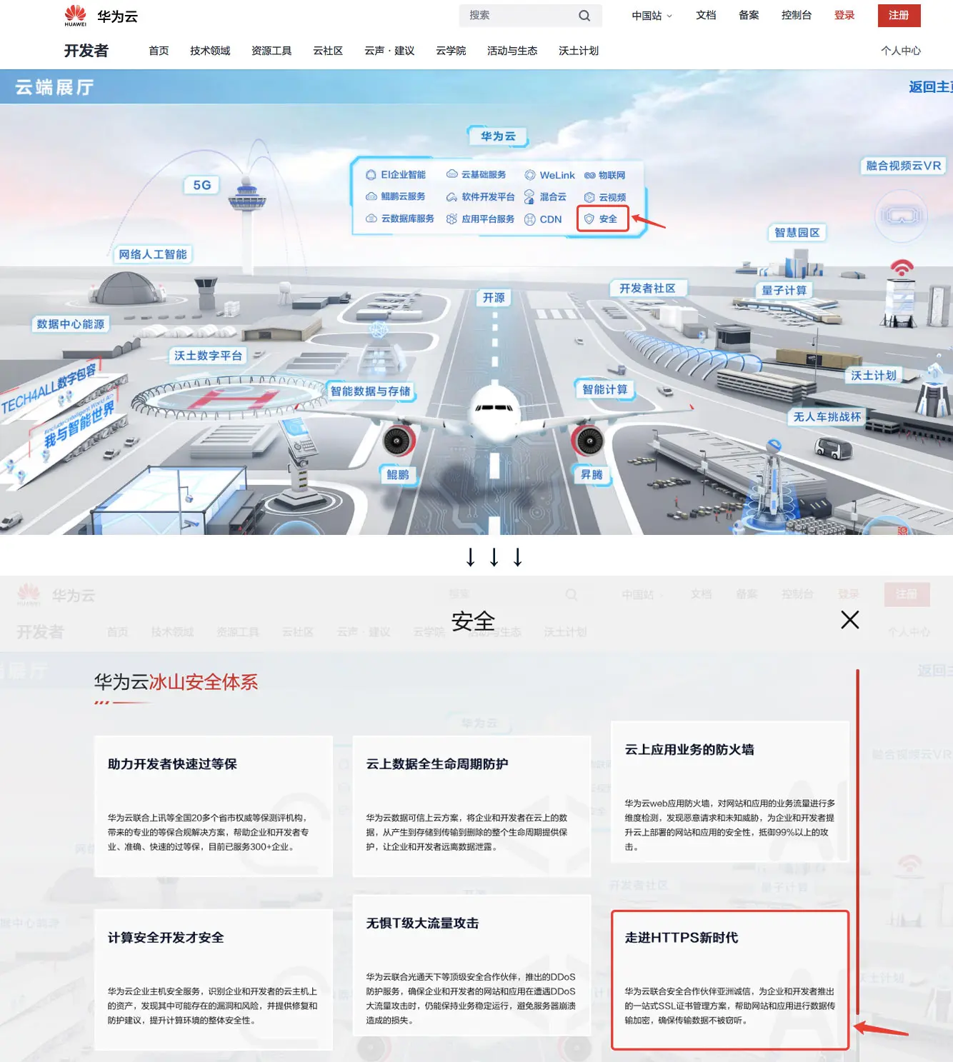 想知道答案吗? 快上车!登陆华为开发者大会“云端展厅”。 走进HTTPS新时代, 不容错过的黑科技, 掌控安全,云领创新 一起启程尖端科技的探索吧!