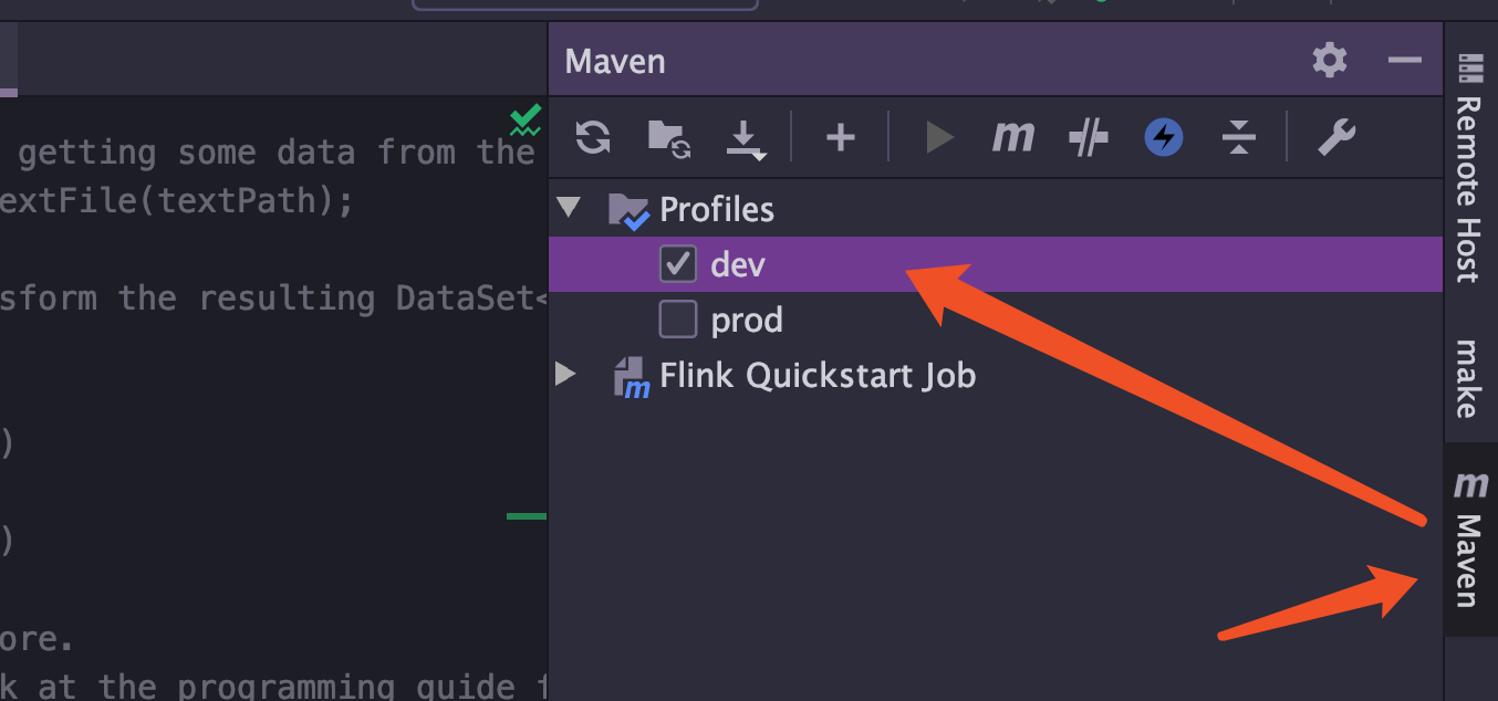 比较常用的方式,直接在右侧 maven 菜单,选择不同的环境配置 → 然后运行即可: