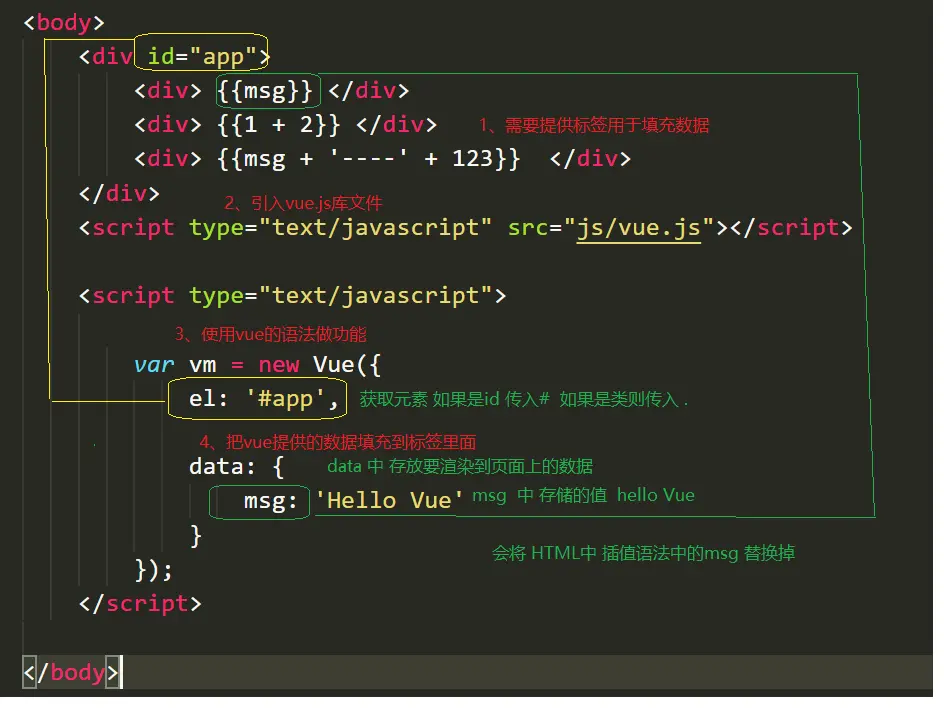 <!-- 即使data里面定义了msg这里仍然是输出显示的{{msg}} -->