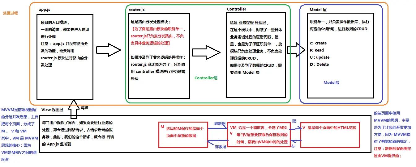 - MVC 是后端的分层开发概念; MVVM是前端视图层的概念,主要关注于 视图层分离,也就是说:MVVM把前端的视图层,分为了 三部分 Model, View , VM ViewModel
