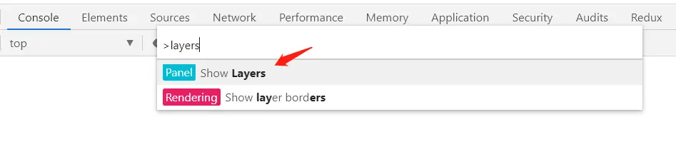 打开浏览器控制台,输入ctrl+shift+p,在搜索框内输入layers,选择show Layers