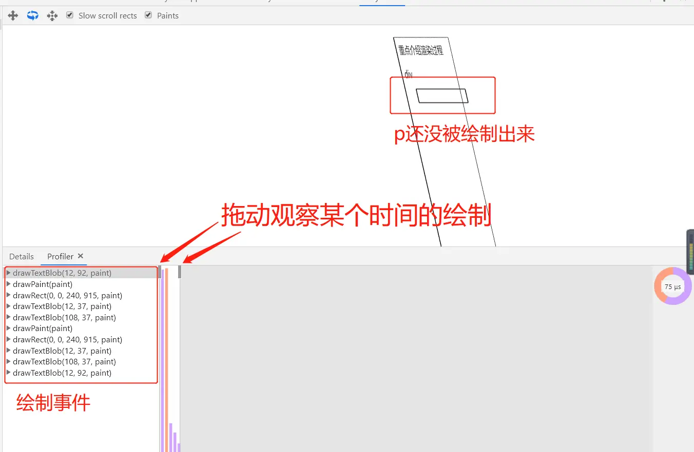 用回我们上面的第一个例子,来到#document层,选择Paint Profiler,打开Profiler界面,可以看到绘制的过程