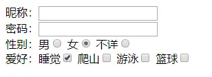 游泳<input type="checkbox" name="hobby">