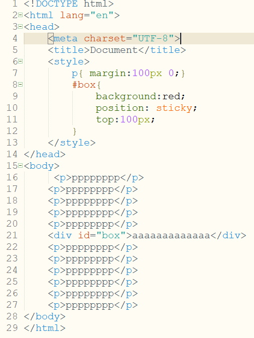 (4)相对于整个浏览器窗口进行偏移,不受浏览器滚动条的影响,不会受到祖先元素的影响。
