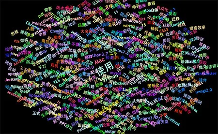 和传统的在线博客标签云最大的区别在于,这些标签并不是我手动打上去的,因为时间有限,每写一篇文章就自己提取很多关键字出来,还得挨个入库,这件事想想就很痛苦,于是写脚本自动提取关键字,再综合所有文章的标题得出。