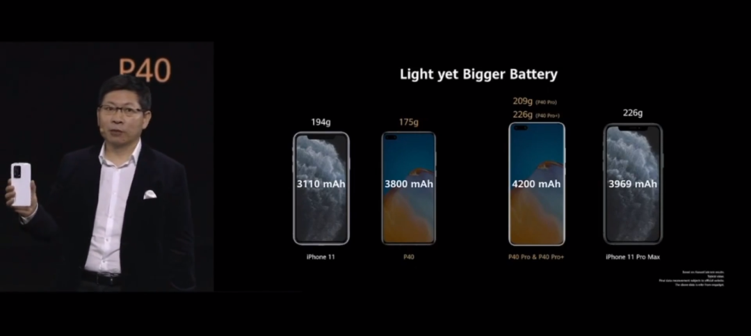 P40仅有3800mAh,P40 Pro和Pro+则为4200mAh。