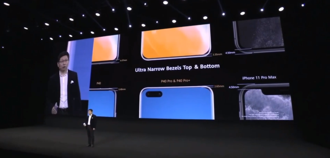 下巴稍微宽一点,但也只有3.35毫米,上下左右边框均比iPhone 11 Pro Max的4.5毫米窄一大截。