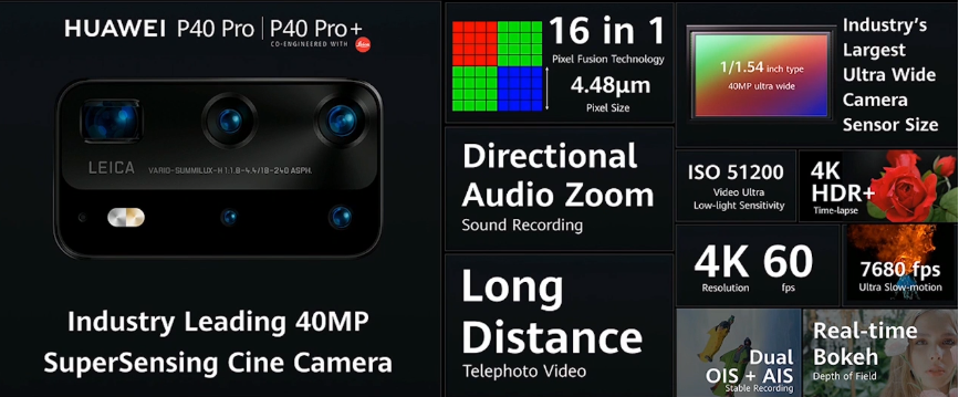 这次P40搭载了徕卡三摄,P40 Pro为徕卡四摄,P40 Pro+为徕卡五摄,参数如下: