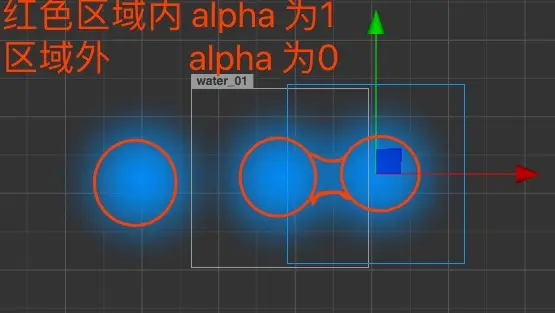 这款游戏中水的粘连效果在Construct3中利用图层很容易实现,就是每个水滴都是挂了两个圆形图片素材,其中一个是水滴本来的蓝色,另一个是其他颜色且素材边缘是半透明的。当几个水滴靠近时让半透明素材边缘相互重叠,这时原本半透明的边缘透明度变低。通过在当前图层中使用Shader,并设定Alpha阈值——小于Alpha阈值部分按全透明处理,大于Alpha阈值部分则按不透明处理——这样一来,一个单独孤立的水滴,其半透明边缘全部被处理成全透明,以此表现一个孤立的水滴,而挤在一起的几个水滴,其重叠的边缘就会处理成不透明,从而形成水滴粘连的效果,代表汇集在一起的水滴,并模拟水的张力。 由于Cocos Creator没有Construct3中的图层Layer概念,不能对一个图层中全部的图片素材整体使用一个Shader,因此上述方法并不适用。 那么问题就是——有没有别的办法让Cocos Creator实现上述水的效果?