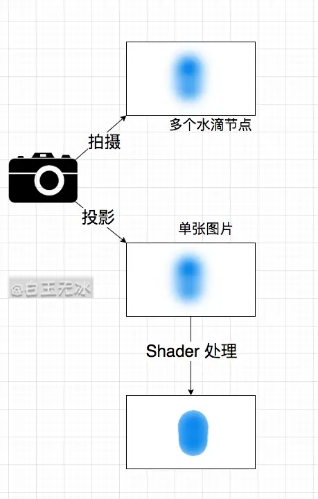 我们需要添加一个新的摄像机,让这个摄像机专门拍摄水滴节点,然后再把拍摄好的图片放在一个sprite节点,再对这个sprite节点作shader处理。