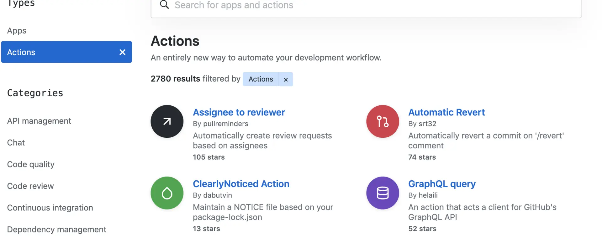 - 官方市场,可以搜索到他人提交的 actions。