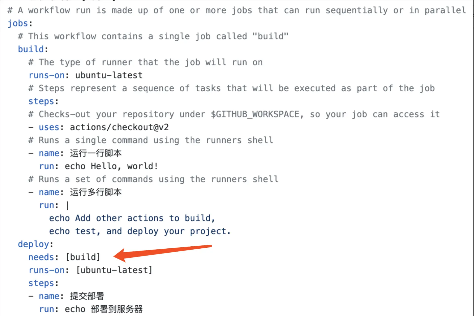 job(任务): 一个workflow由一个或多个 job构成,含义是一次持续集成的运行可以完成多个任务