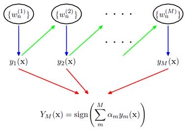 (我发现分为两种,一种是直接改变分错的权重,一种是把前N-1个模型都分错的数据添加到新的训练集里面再用来训练第N个模型)