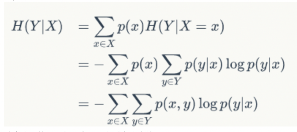 条件熵定义: X给定条件下,Y的条件概率分布的熵对X的数学期望