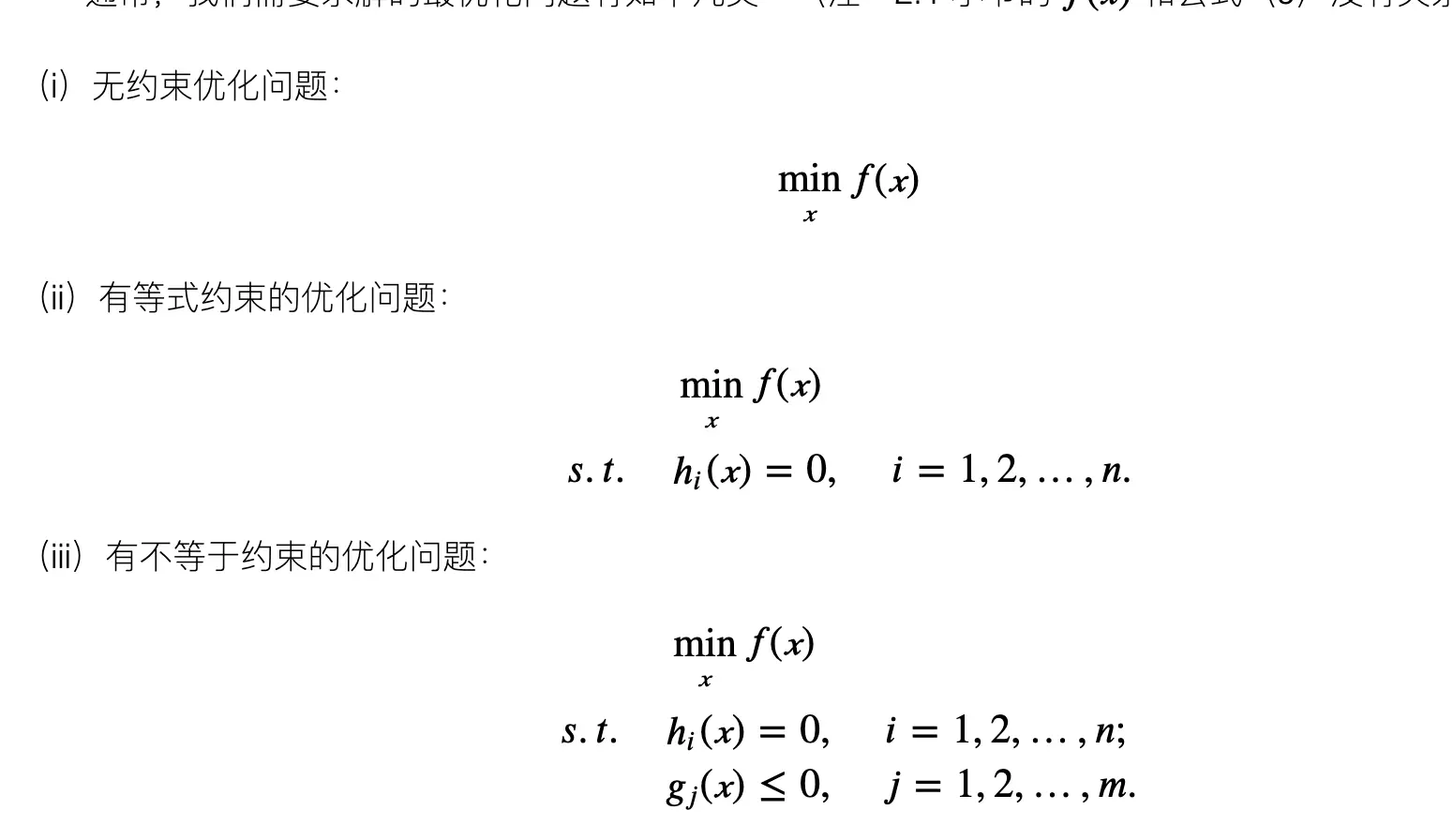 - 如果目标函数是凹的(最大化问题)或凸(最小化问题)并且约束集是凸的,那么该程序称为凸,并且在大多数情况下可以使用来自凸优化的通用方法。
