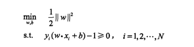 就有我们的目标函数及其约束条件了,这里的约束条件就是要求这个点必须正确分类,只有正确分类这个约束条件才成立