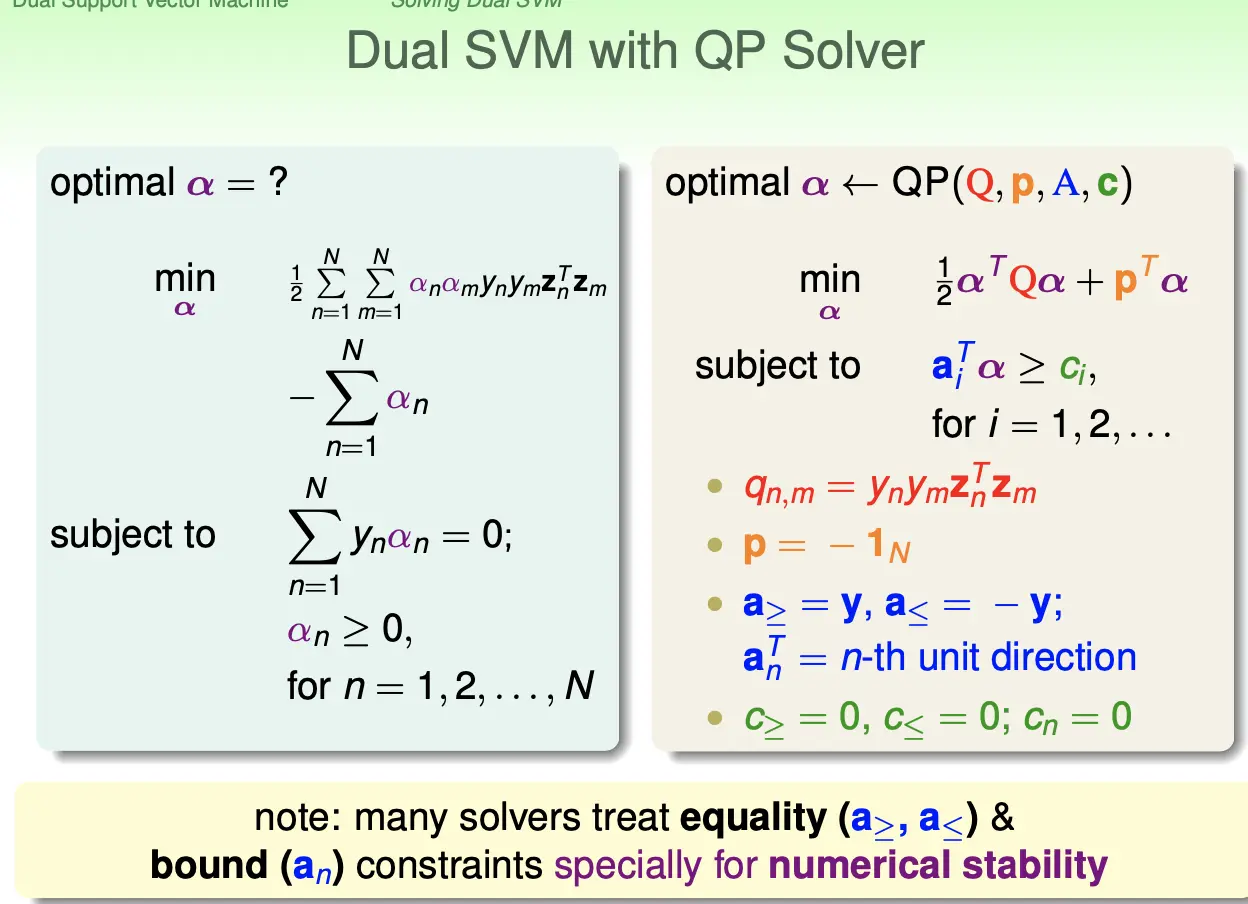 然后我们要通过QP solver求出α,首先先把max转换为min: