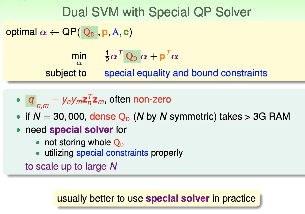 这里的Qn,m经常是稠密的,不为0,所以经常要用special 的sovler来解决