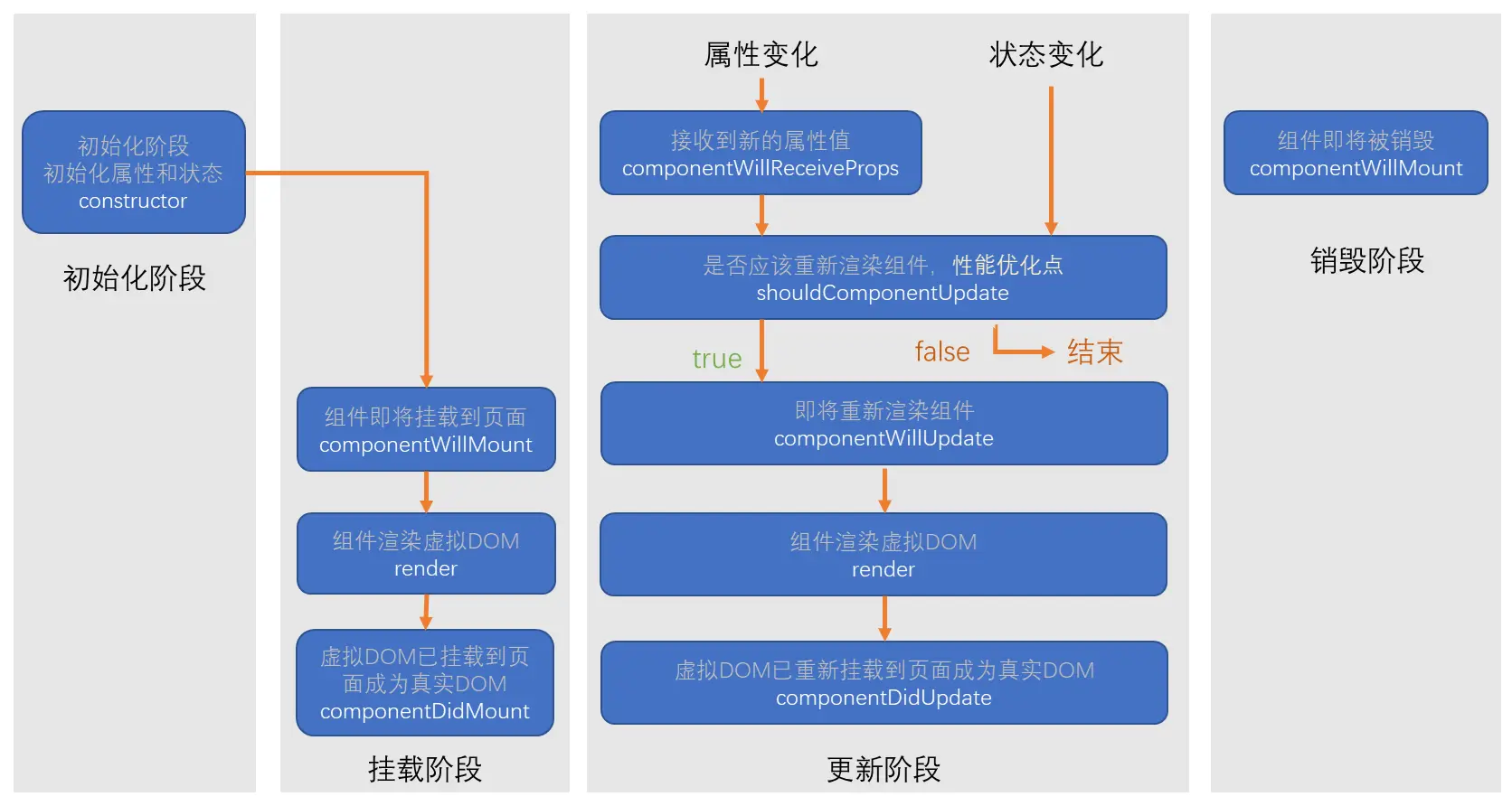 - 组件进入活跃状态(等待需要重新渲染的时候(属性或状态发生变化))