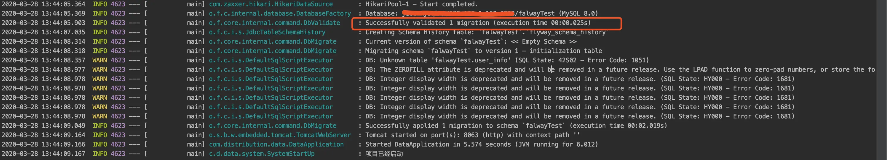 flyway在升级数据库的时候,会检查已经执行过的版本对应的脚本是否发生变化,包括脚本文件名,以及脚本内容。如果flyway检测到发生了变化,则抛出错误,并终止升级,比如第一个人新增了一个字段,并且项目启动,falway执行了,而后一个人在前面这个人写的脚本上面有所改动,这样就会抛出错误,具体的看下面的演示。