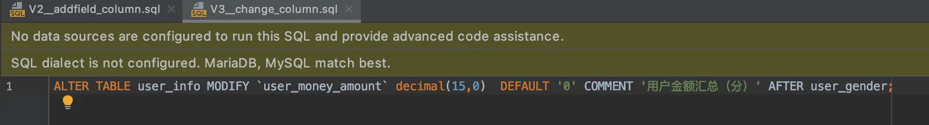 7、给表user_info新增一个字段:user_money_amount: