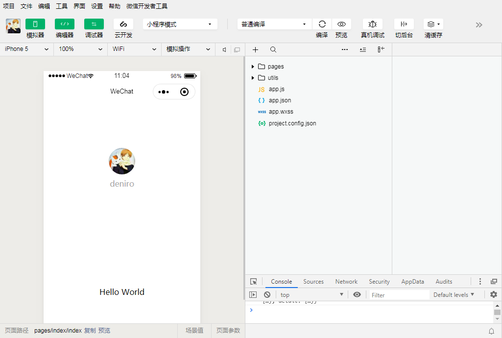 使用微信扫码并确认登录后,就会进入微信开发者工具: