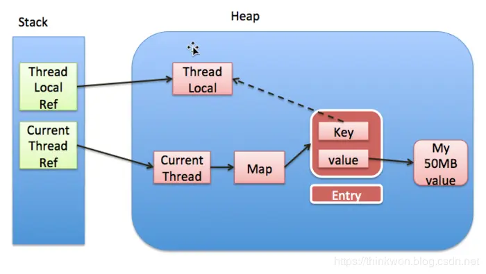 当一个线程调用ThreadLocal的set方法设置变量的时候,当前线程的ThreadLocalMap里面就回存放一个记录,这个记录的key为ThreadLocal的引用,value则为设置的值。如果当前线程一直存在而没有调用Threadlocal的remove方法,并且这时候其他地方还有对ThreadLocal的引用,则当前线程的ThreadLocalMap变量里面会存在ThreadLocal变量的引用和value对象的引用是不会被释放的,这就会造成内存泄露的。但是考虑如果这个ThreadLocal变量没有了其他强依赖,而当前线程还存在的情况下,由于线程的ThreadLocalMap里面的key是弱引用,则当前线程的ThreadLocalMap里面的ThreadLocal变量的弱引用会被在gc的时候回收,但是对应value还是会造成内存泄露,这时候ThreadLocalMap里面就会存在key为null但是value不为null的entry项,so,一定要记得remove,避免内存泄漏