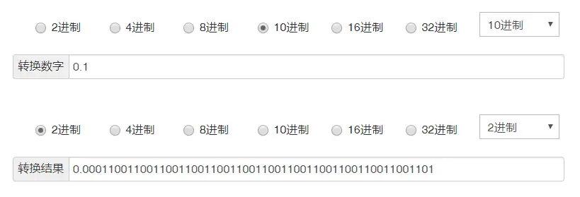 十进制中,0.1是1除以10;但二进制中的“原子”只能是1除以2(除以它的进制),或者再除以2。即二进制只能完整表示0.5 0.25 0.125 0.0625...0.1只能用这些数来近似模拟
