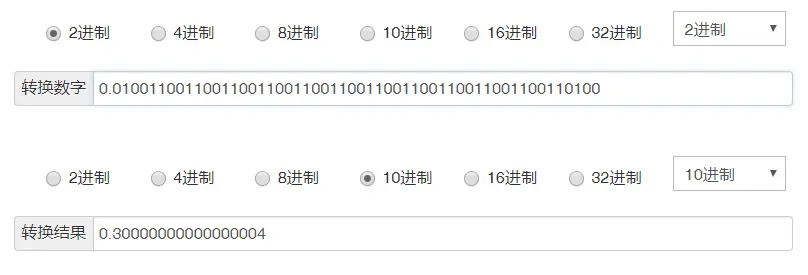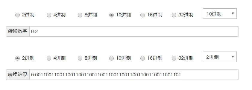 可以看到一个问题,因为数值位的位数只有52位,存储的数据精度是有限的。但0.1和0.2在二进制下的表示都是无限循环小数。