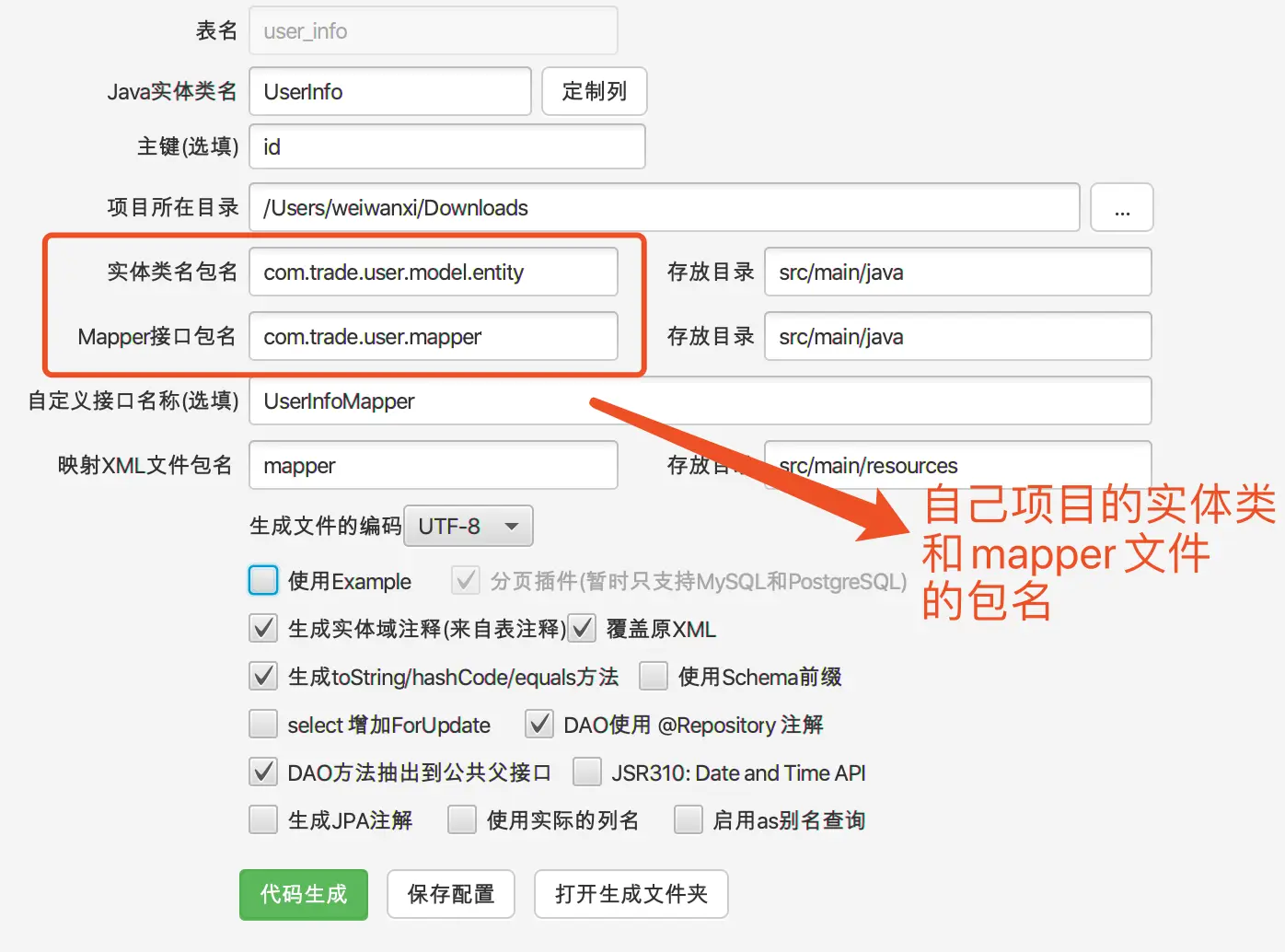 配置里面可以定义自己项目的包名,下次生成直接使用就行,不用再写了,具体的各位下载之后自己去试吧!