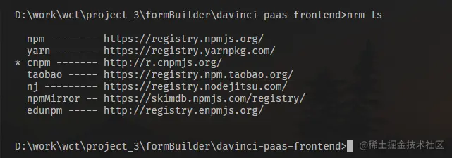 输入nrm ls 可以查看对应可使用的源列表,前面带 * 就代表当前使用的源