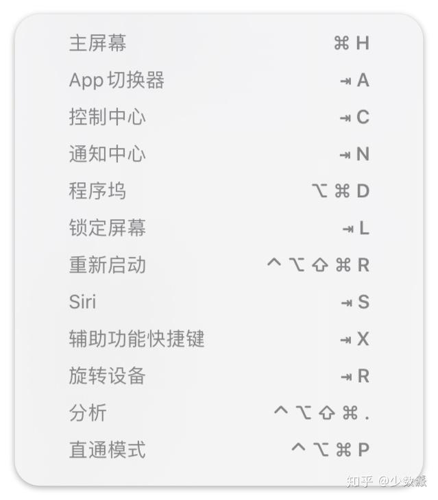 除此之外,由于「全键盘控制」将 Tab 键作为新的功能键来使用,它与字母键也就诞生了许多组合键。比如 Tab + L(Lock)即可锁屏,Tab + R(Rotate)可以旋转屏幕,Tab + N / C 则对应着通知中心(Notification Center)和控制中心(Control Center),按键与功能名称首字母相同,非常方便记忆。