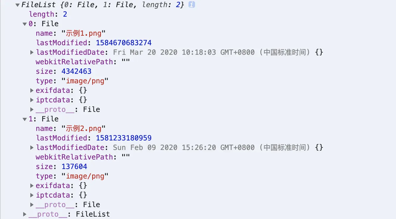 我们会发现,里面记录了文件的名字,修改时间,大小和类型等,可知这个对象只存放了一些文件的信息,相当于是本地文件的索引,并不是把文件放到input中了,上传文件时它会再去找到实际的本地文件。注意这是一个只读对象!,所以不要尝试直接去修改它.