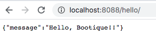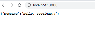 HelloApi.java。这里符合Java JAX-RS API标准zzw:boonique_fist_attempt zzw$ vi src/main/java/com/wonderingwall/HelloApi.java package com.wonderingwall; import javax.ws.rs.GET; import javax.ws.rs.Path; import javax.ws.rs.Produces; import javax.ws.rs.core.MediaType; @Path("/") public class HelloApi { @GET @Produces(MediaType.APPLICATION_JSON) public String get() { return "{\"message\":\"Hello, Bootique!!\"}"; } } -