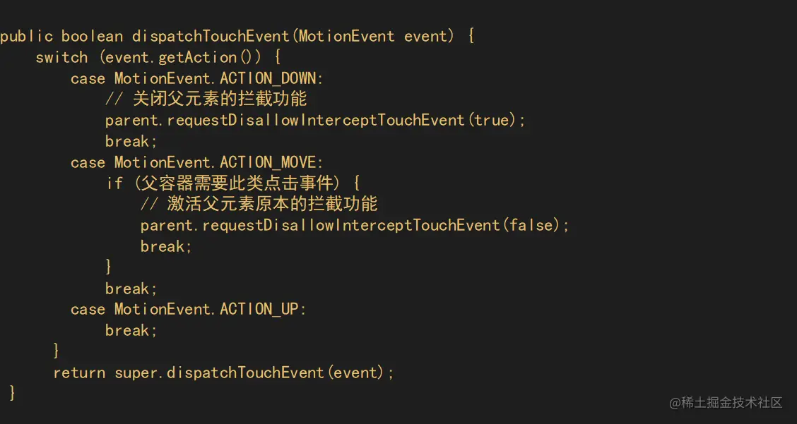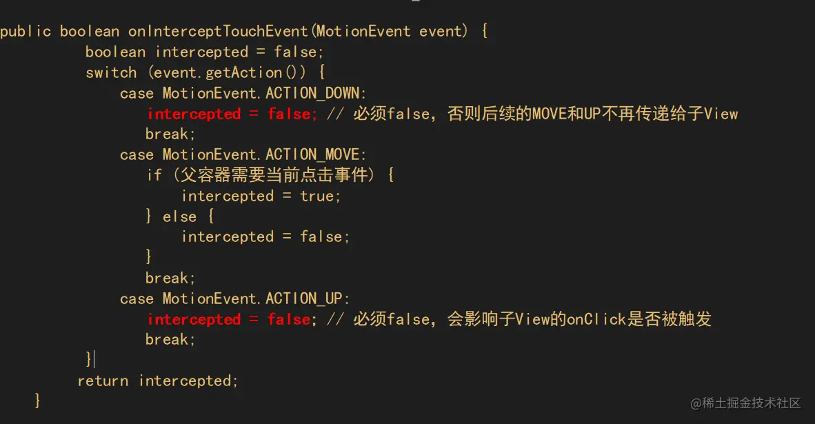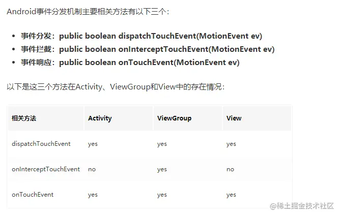 Android 事件拦截初探 A_B_C_Q 2020-03-28 237 阅读1分钟 Android的事件拦截处理大致分为内部拦截和外部拦截处理 外部拦截 内部拦截 事件分发机制相关方法 Android事件分发机制主要相关方法有以下三个: