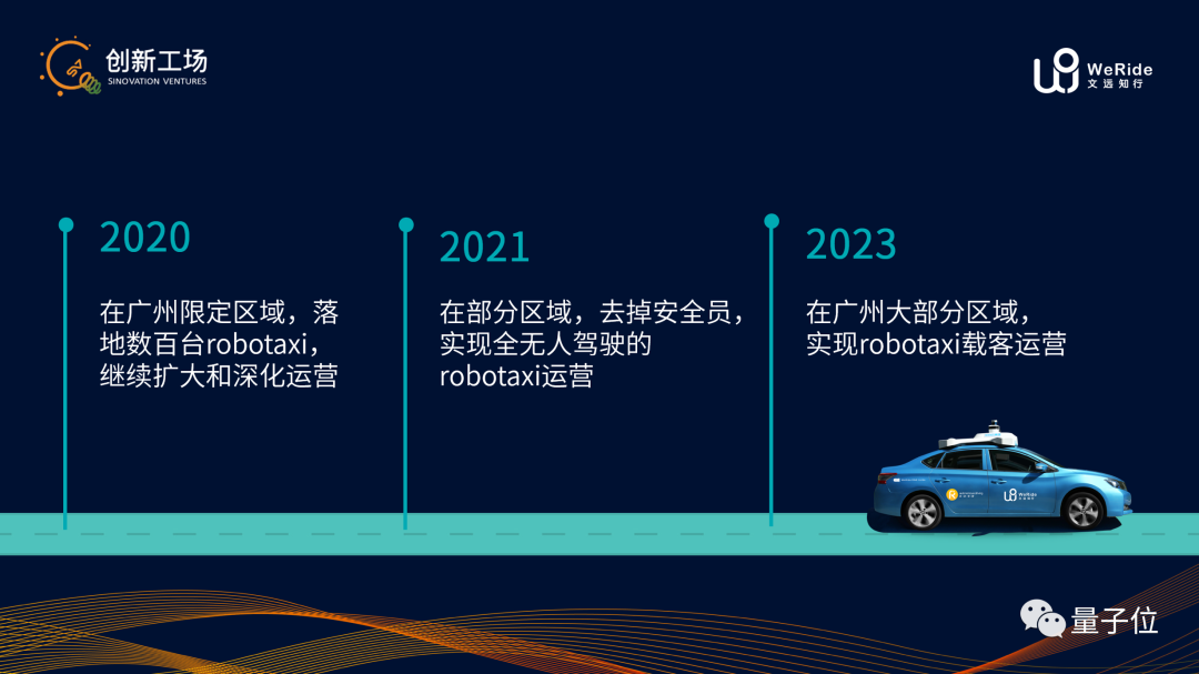 韩旭最后也透露了小目标,称文远知行在2020年会在广州部署百辆RoboTaxi,2021年推动政策准许去掉安全员载客运营,2023年则能在广州大部分地区,实现RoboTaxi无人载客运营。