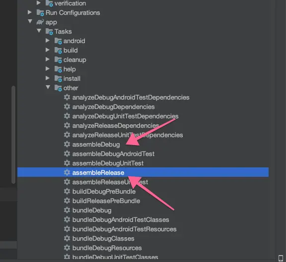 当我们要执行apk的上传功能之前,首先我们需要确保apk编译出来。那打包的task是哪一个呢?我们在gradle面板下找一下,发现,打包的任务是“assembleRelease”这个task。
