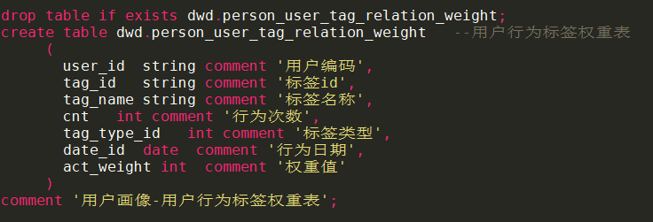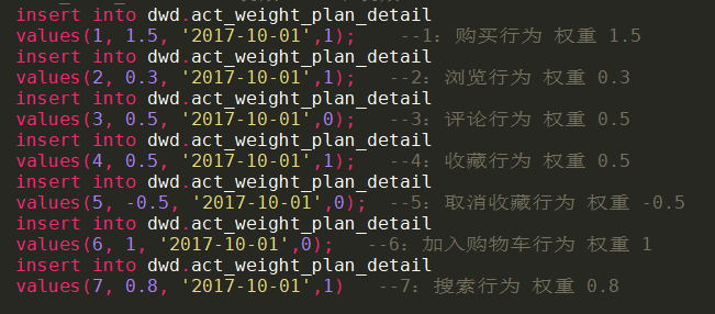 加工标签权重表时,需要根据用户不同行为对应的权重建立一个权重维表: