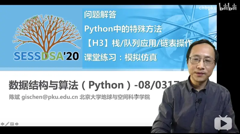 本课程主讲是陈斌老师,陈老师是北京大学地球与空间科学学院教师,博士,副教授,硕士生导师。主讲本科生课程《数据结构与算法(Python版)》、《离散数学》等等。