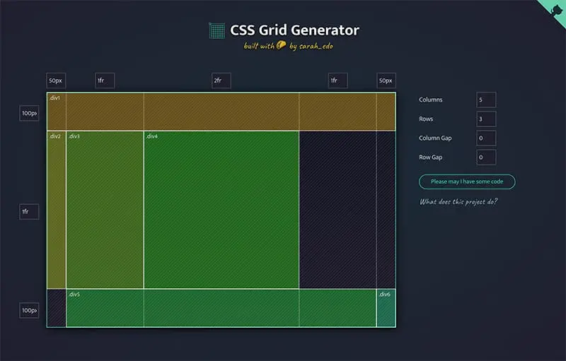 6、cssgridgenerator:在线通过点击动态生成基本的 CSS Grid 代码。在线尝试