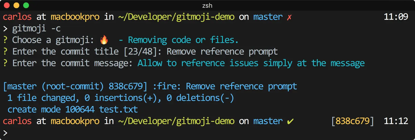 15、gitmoji-cli:Git 交互式客户端,方便在提交信息中增加 emoji 表情。终于知道别人的提交信息为什么会有表情了,效果如下图: