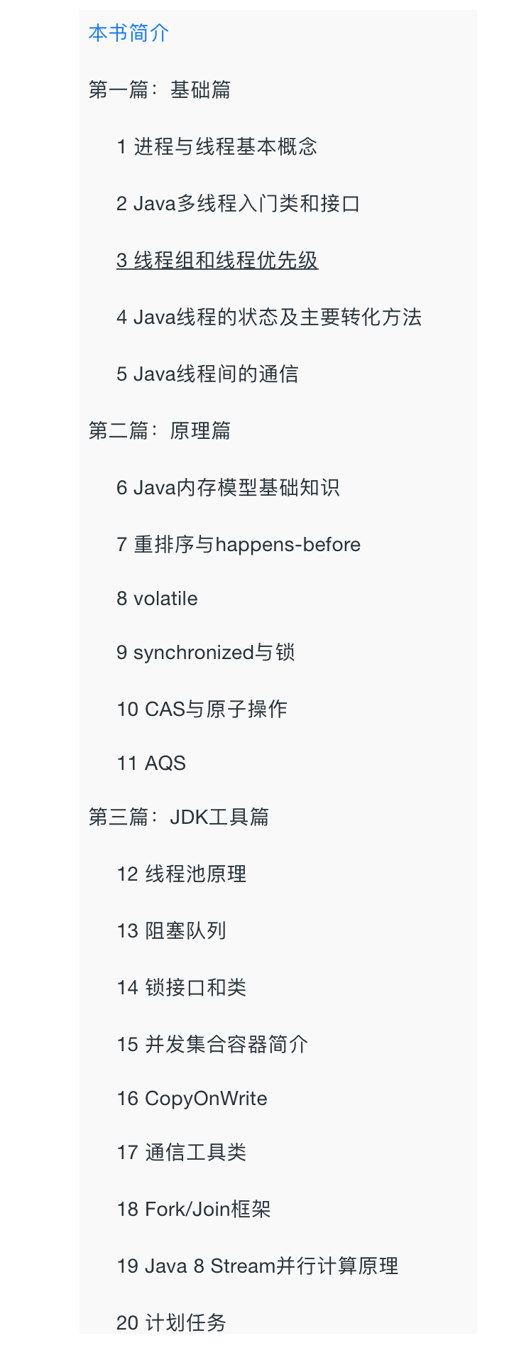事情是这样的,前些日子和得知一个读者在准备阿里的面试,我蛮有兴趣的跟他聊了起来,随着话题越来越深入,我发现这位读者有意思,他和几位阿里的工程师之前编写了一本 concurrent.redspider.group,我一搜发现不得了,这完全是一本书啊,截图看一下他的目录