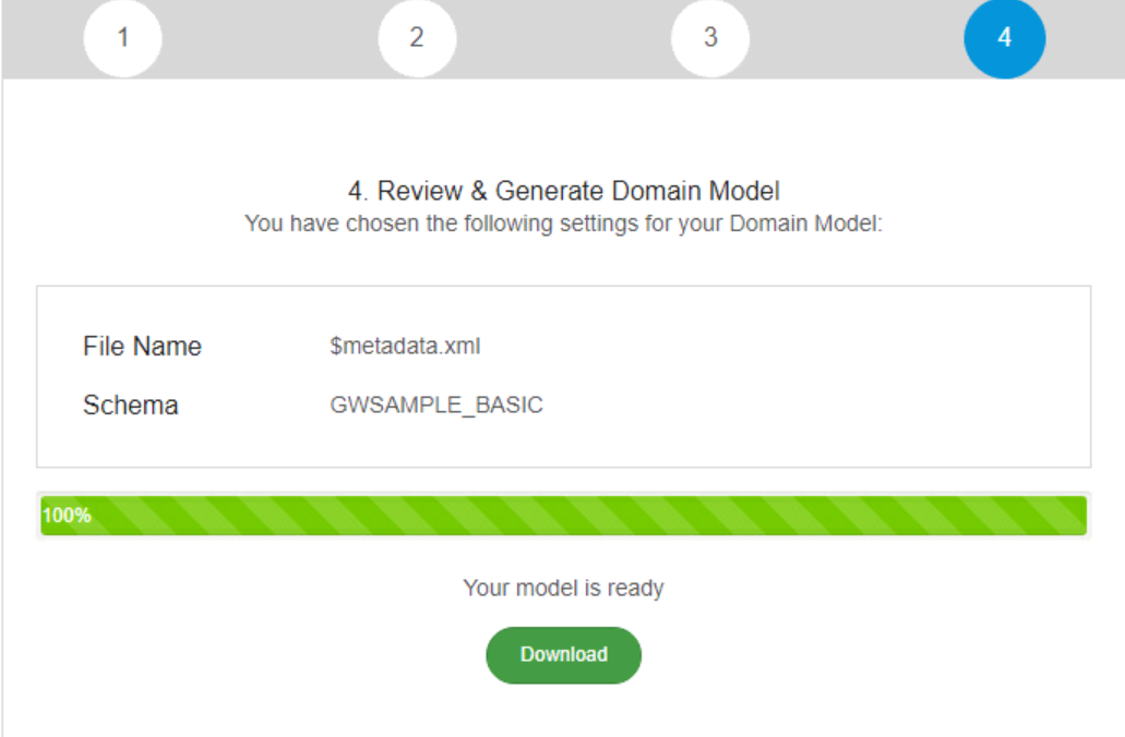 You can generate this domain model by providing your service metadata as a file, URL, or select a service from SAP API Business Hub.