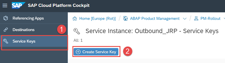 给Destination service创建一个新的service key,将其内容保存在本地: