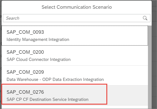 从Communication Scenario下拉列表里,选择之前介绍的SAP_COM_0276: SAP CP CF Destination Service integration: