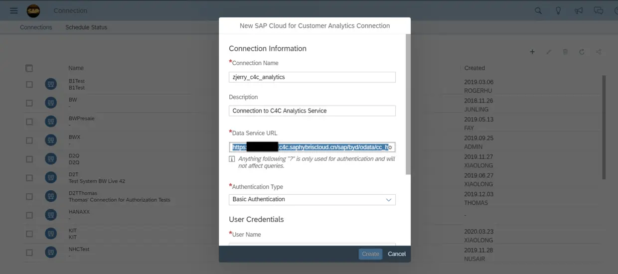 在SAP Analytics Cloud里新建一个connection: