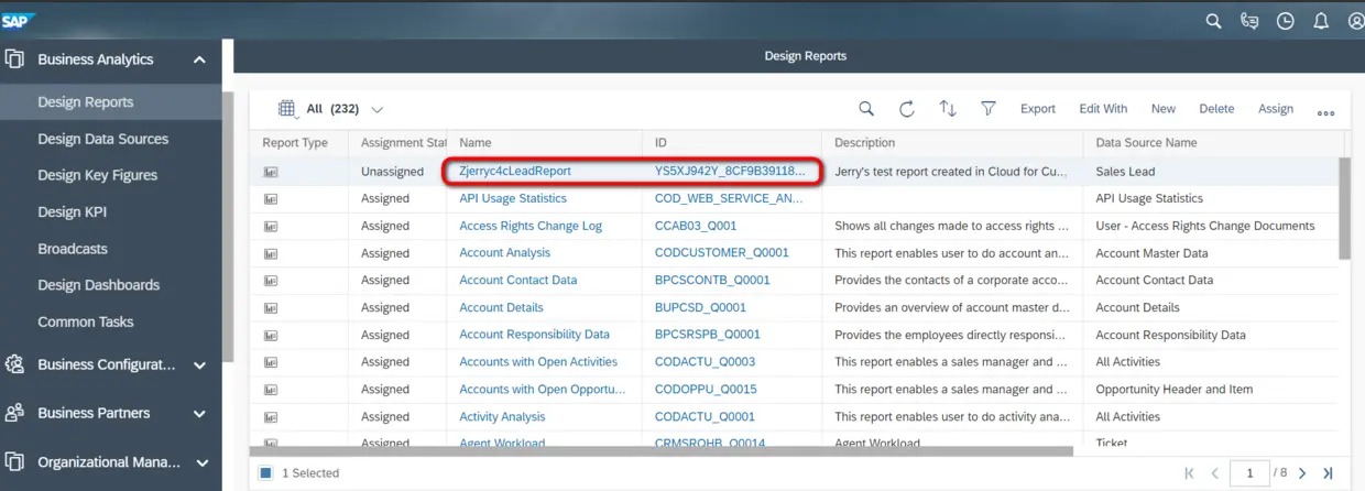 这个自定义的C4C Report创建完毕: