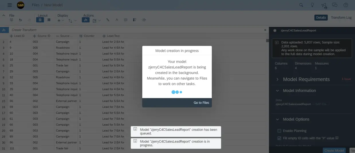 SAP Analytics Cloud Model基于这批导入的数据自动进行创建。