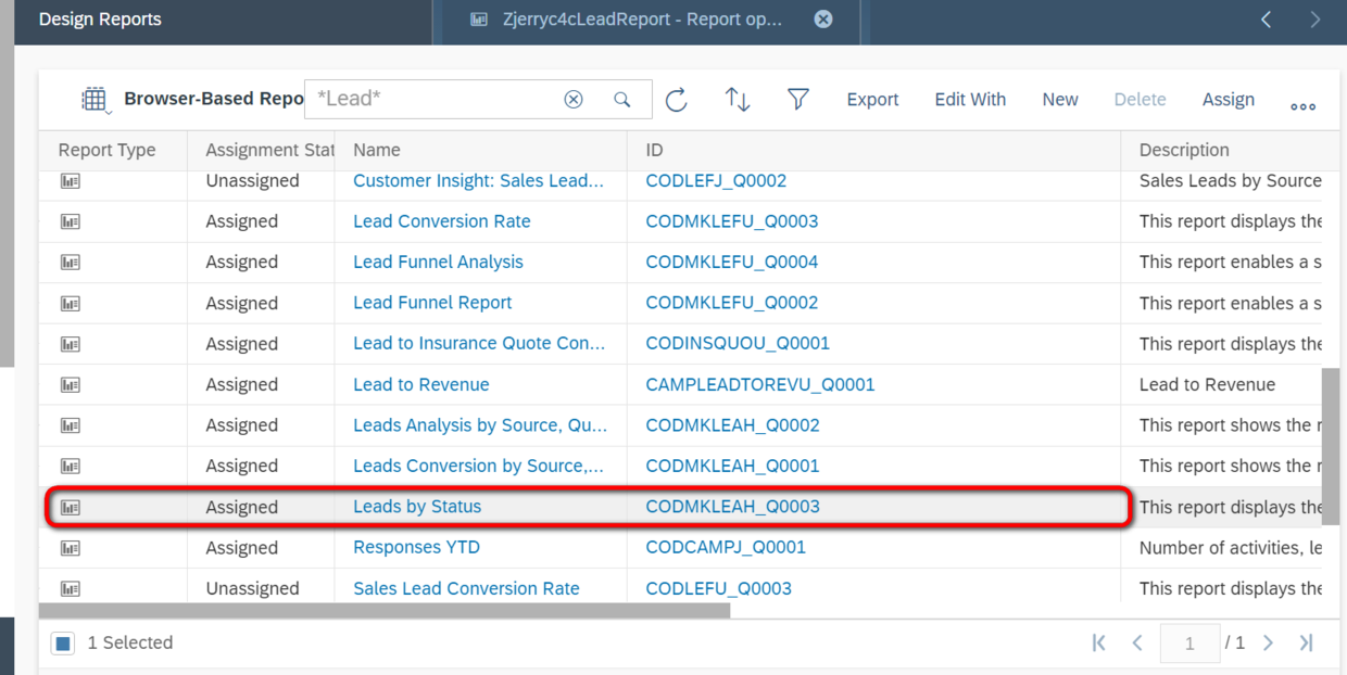 query列表里出现的report在C4C里都能找到: