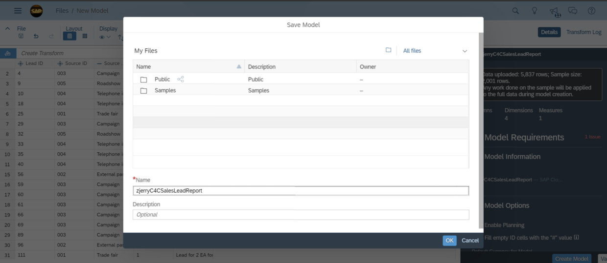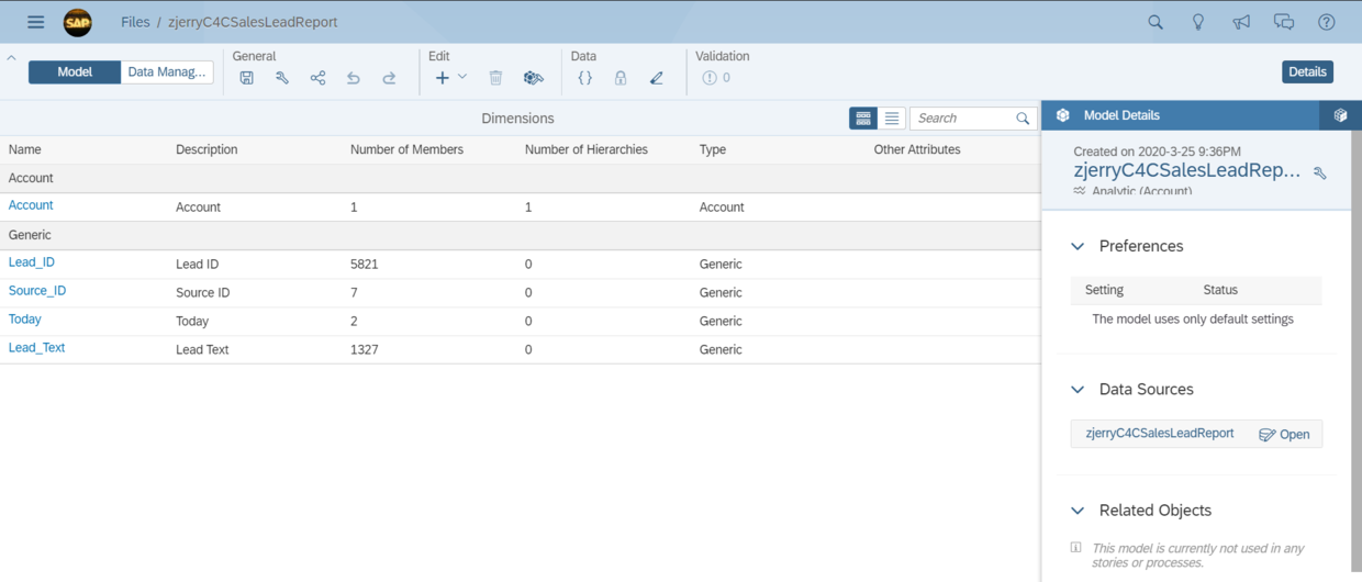 C4C的lead数据成功导入到了SAP Analytics Cloud里: